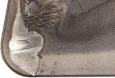 過度的月牙洼磨損會(huì)引起切削刃減弱。切削刃后緣的破損會(huì)導(dǎo)致表面質(zhì)量的下降。刀片崩斷危險(xiǎn)。